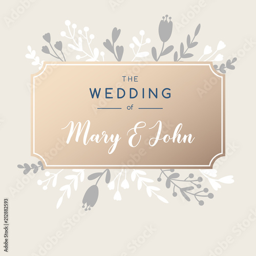 Elegant Wedding Invitation Background Card Design With Gold Floral